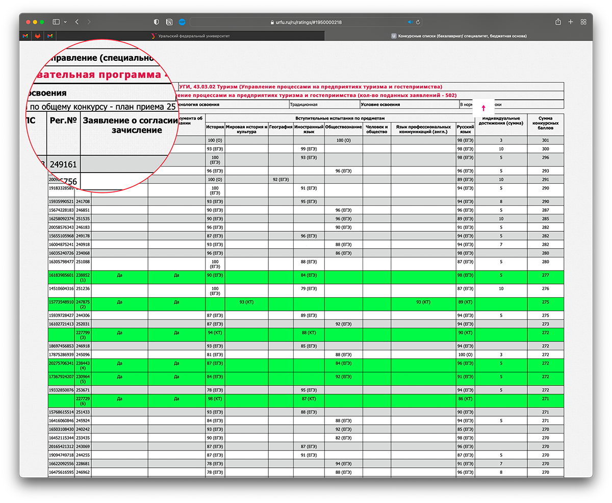 Абитуриентам нужно проверить рейтинг по ссылке. По своему регистрационному номеру Вы должны быть выделен зеленым цветом на том направлении, куда оформлено согласие на зачисление.